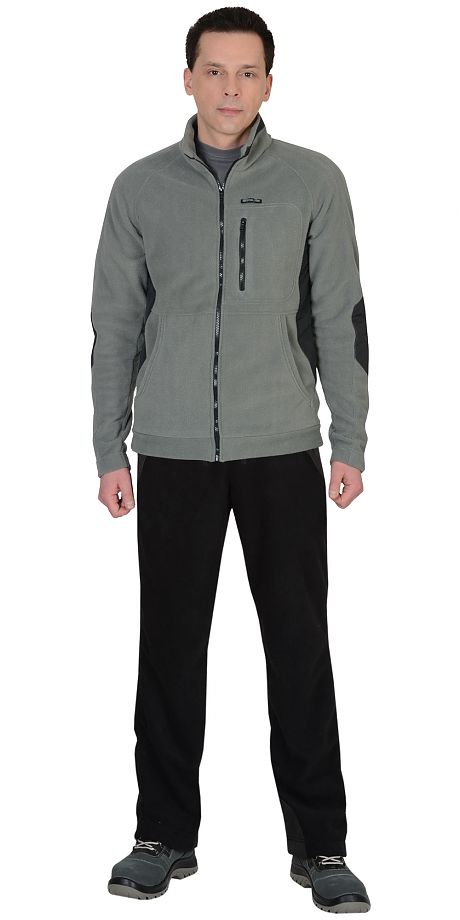 Куртка прямого силуэта с центальной застежкой на молнию, с рукавом реглан, с воротником-стойка, с притачным поясом, с декоративными вставками из отделочной ткани "Дюспо" в боковых частях спинки, полочек и верхней части внешненго воротника. На рукавах из отделочной ткани "Дюспо" настрочены налокотники. ГОСТ 25295-2003