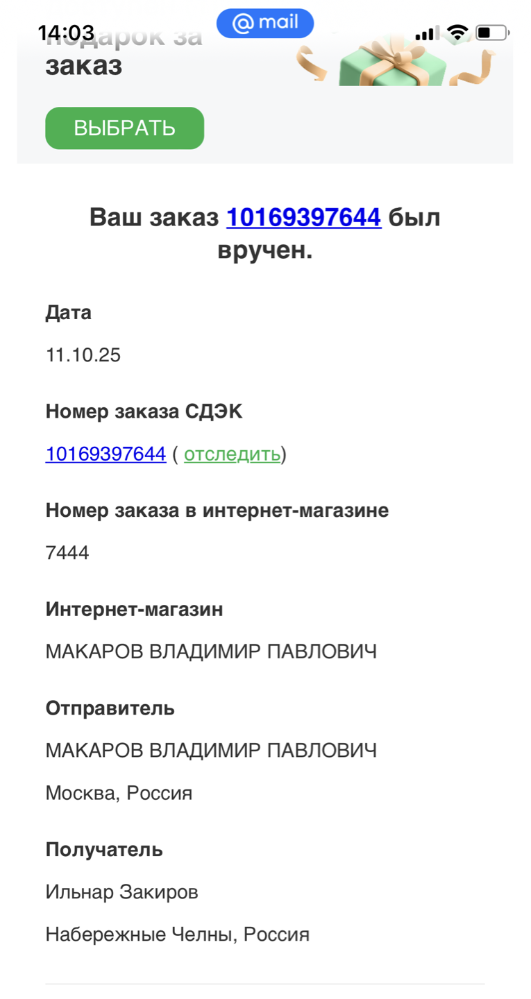 Добрый день Ильнар, вы заказали куртку, это прямо четко отображено в заказе, доставили вам куртку, через сдэк !ответ на отзыв Размер: 510 кбответ на отзыв 2 Размер: 221,8 кб -